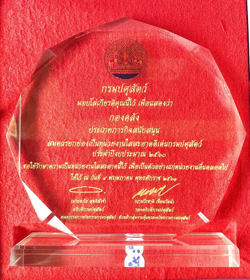 รางวัลหน่วยงานใสสะอาดดีเด่น ประจำปีงบประมาณ 2560