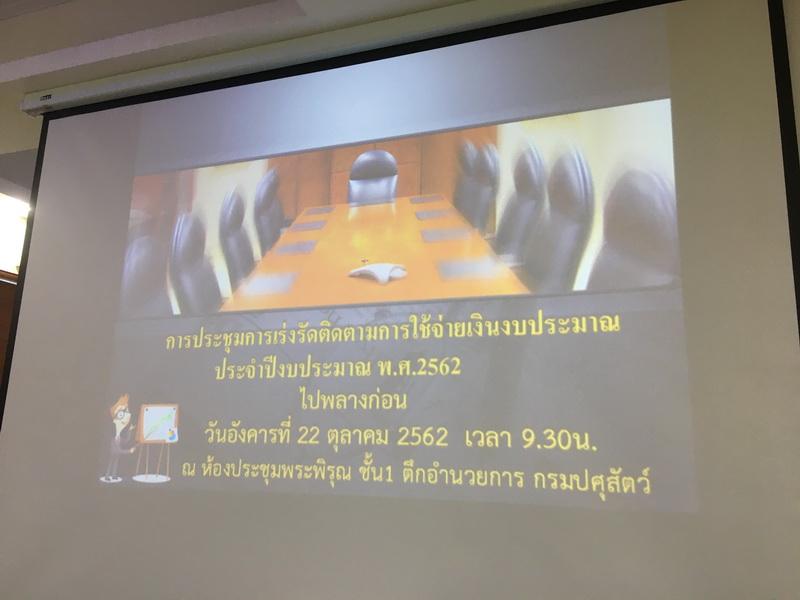 วันอังคาร ที่ 22 ตุลาคม 2562 เวลา 09.30น. ณ ห้องประชุมพระพิรุณ ตึกอำนวยการ กรมปศุสัตว์