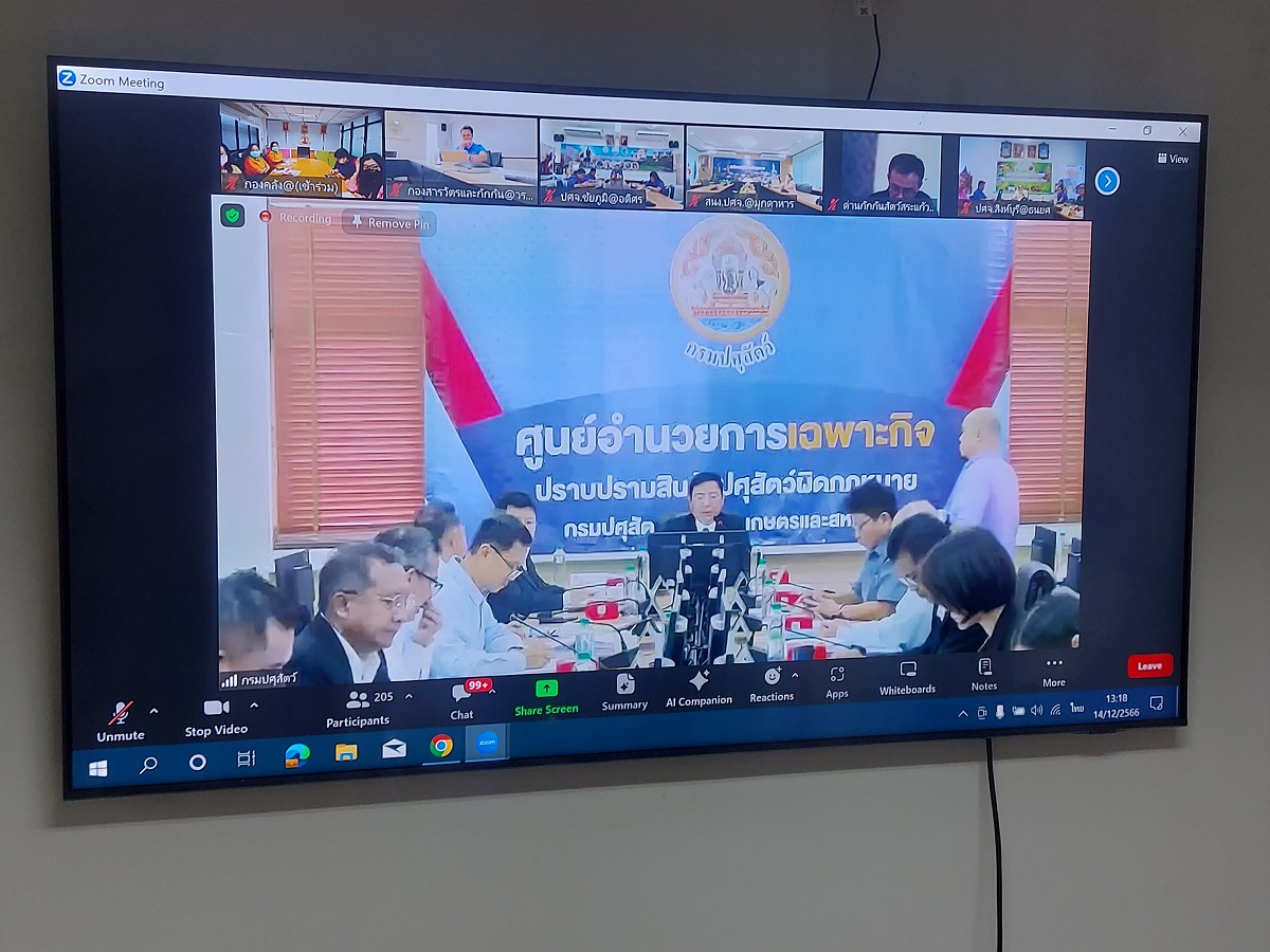 นายสัตวแพทย์สมชวน รัตนมังคลานนท์ อธิบดีกรมปศุสัตว์ เป็นประธานการประชุมขับเคลื่อนงานนโยบายกรมปศุสัตว์ ปี 2567 ครั้งที่ 1 โดยมีรองอธิบดีกรมปศุสัตว์ พร้อมด้วย ผู้อำนวยการสำนัก/กอง ปศุสัตว์เขต ปศุสัตว์จังหวัด และเจ้าหน้าที่ที่เกี่ยวข้องเข้าร่วมประชุม ณ ห้องประชุมพระพิรุณ ตึกอำนวยการ ชั้น 1 กรมปศุสัตว์และ ผ่านระบบทางไกลออนไลน์ (Zoom Meeting)