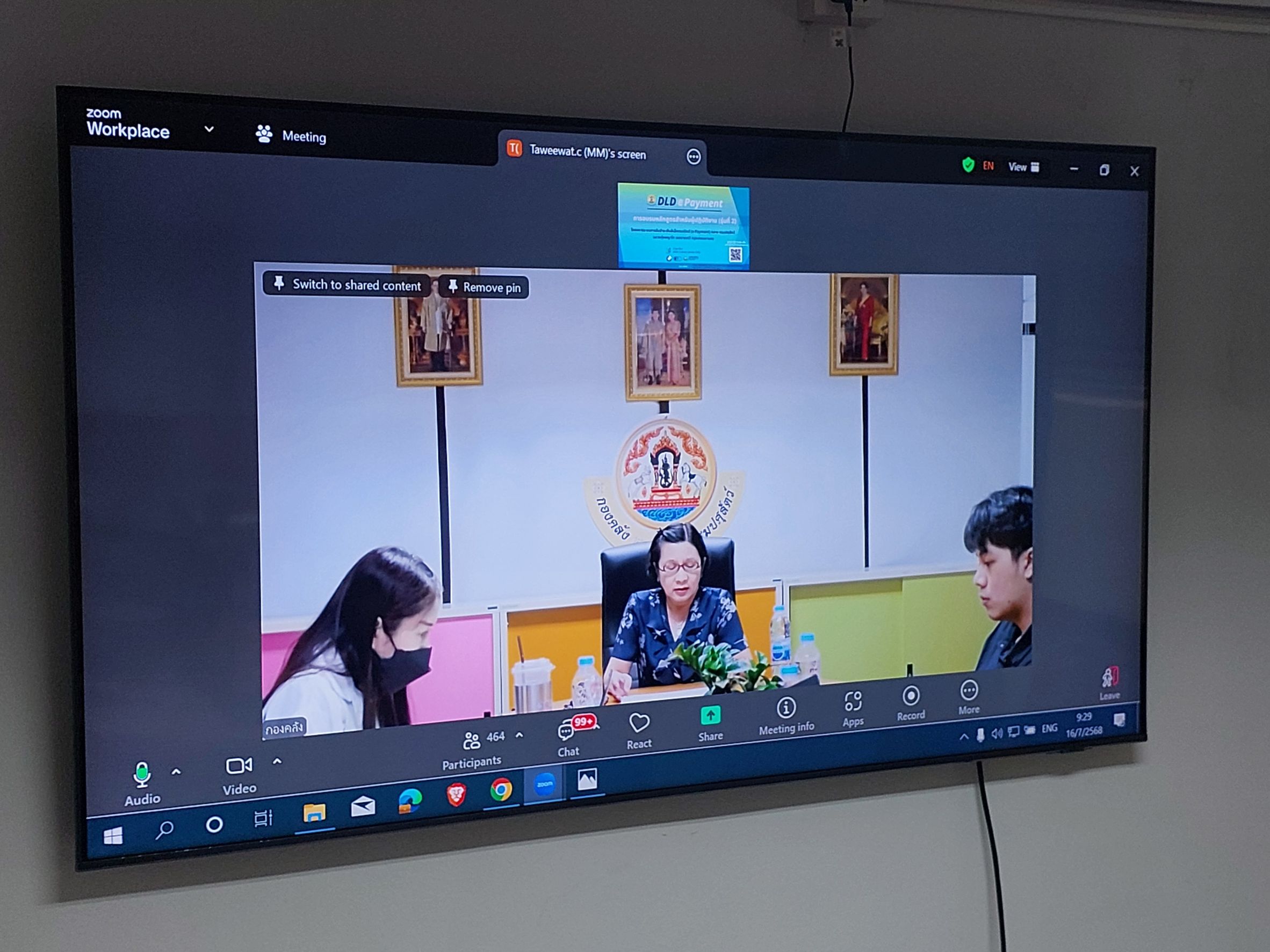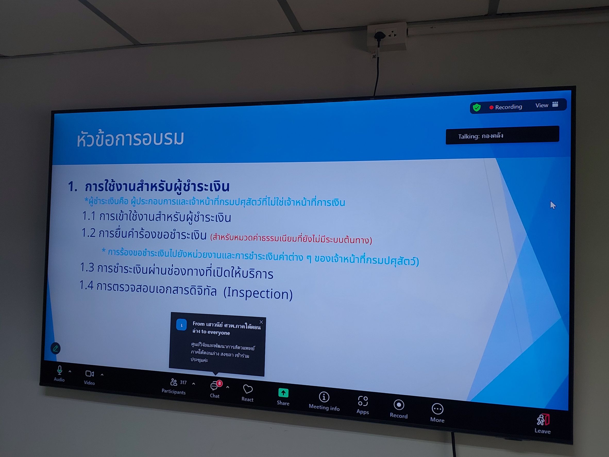 ณ ห้องประชุมกองคลัง ตึกอุศุภราชชั้น 2 ผ่านการประชุมทางไกล Zoom Meeting