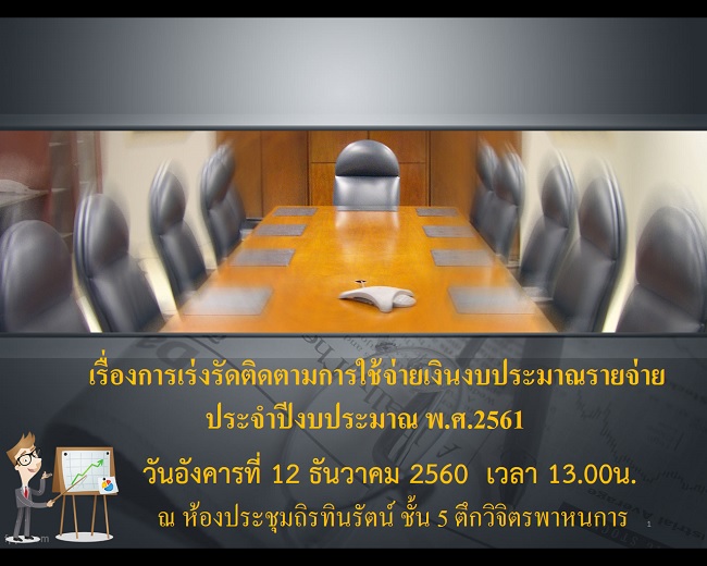 ภาพประชุมการเร่งรัดและติดตามการใช้จ่ายงบประมาณรายจ่าย ประจำปีงบประมาณ2561 วันอังคารที่ 12 ธันวาคม 2560 เวลา 13.00น.
