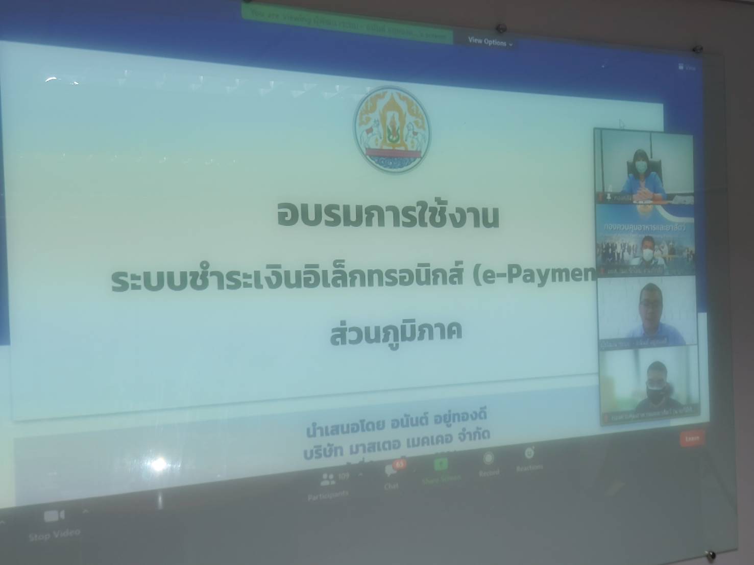 โครงการอบรมอบรมการใช้งานระบบชำระเงินอิเล็กทรอนิกส์ e-payment ส่วนภูมิภาค ผ่านโปรแกรม ZOOM CLOUD MEETING