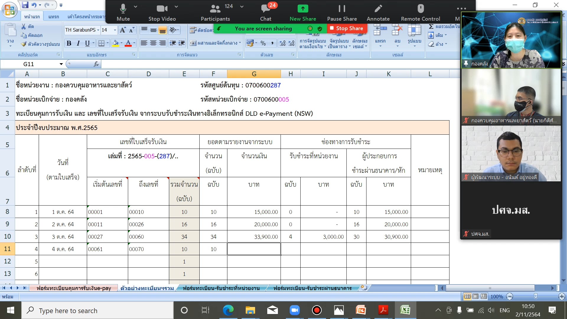 วันอังคารที่ 2 พฤศจิกายน 2564 ณ ห้องประชุมกองคลัง ชั้น2 ตึกอุศุภราช