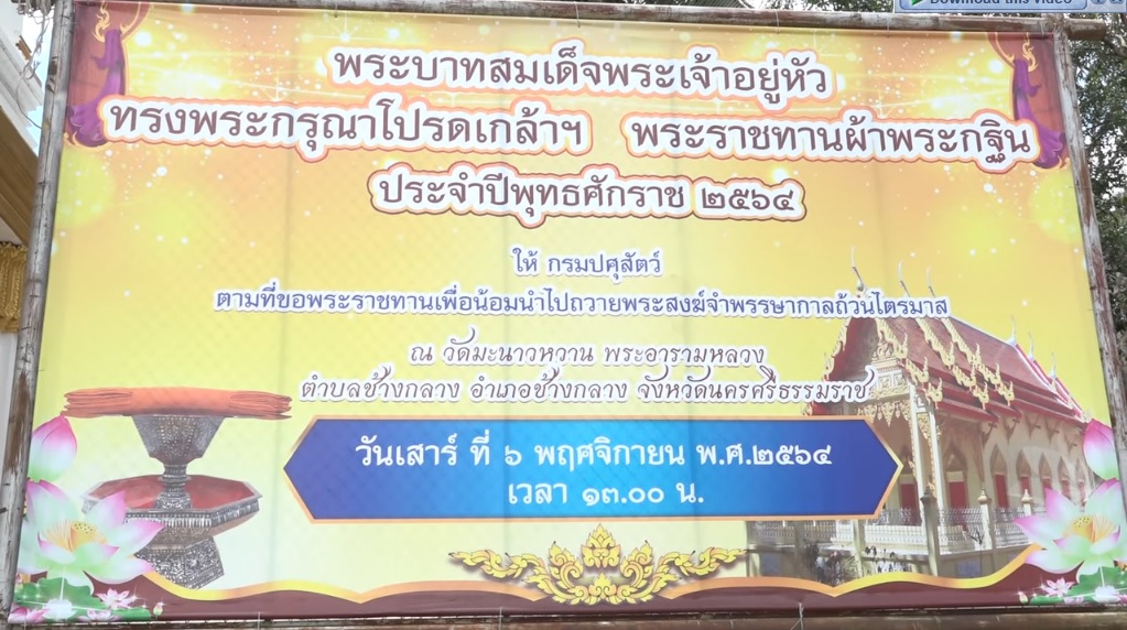 พระบาทสมเด็จพระปรเมนทรรามาธิบดีศรีสินทรมหาวชิราลงกรณ พระวชิรเกล้าเจ้าอยู่หัว ทรงพระกรุณาโปรดเกล้าฯ พระราชทานผ้าพระกฐิน ให้กรมปศุสัตว์ โดยนายสัตวแพทย์สรวิศ ธานีโต อธิบดีกรมปศุสัตว์ พร้อมด้วยรองอธิบดีกรมปศุสัตว์ คณะผู้บริหาร และเจ้าหน้าที่กรมปศุสัตว์ น้อมนำไปถวาย ณ วัดมะนาวหวาน ต.ช้างกลาง อ.ช้างกลาง จ.นครศรีธรรมราช ในวันเสาร์ที่ 6 พฤศจิกายน 2564 พร้อมมอบเงินบำรุงสถานศึกษาที่อยู่ในความอุปถัมภ์ของวัด 3 โรงเรียน คือ โรงเรียนพระปริยัติธรรมวัดมะนาวหวาน โรงเรียนวัดมะนาวหวาน และโรงเรียนช้างกลางประชานุกูล ทั้งนี้ ยอดถวายผ้าพระกฐินพระราชทานทั้งสิ้น 5,220,696.25 บาท