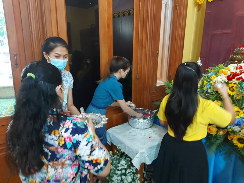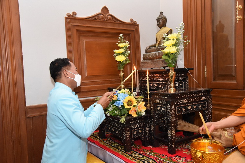 วันจันทร์ที่ 11 เมษายน 2565 นายสัตวแพทย์สรวิศ ธานีโต อธิบดีกรมปศุสัตว์ พร้อมคณะผู้บริหารฯ กราบสักการะขอพรพระพุทธอุดมสุข และสิ่งศักดิ์สิทธิ์ประจำกรม จัดพิธีทำบุญถวายภัตตาหารเช้าแด่พระสงฆ์ 9 รูป โดยมีเจ้าหน้าที่กรมปศุสัตว์ร่วมสรงน้ำพระ และ รดน้ำขอพรฯ เพื่อความเป็นสิริมงคล และสืบสานประเพณีไทยเนื่องในวันสงกรานต์ โดยได้ดำเนินการภายใต้มาตรการป้องกันโควิค-19 ณ กรมปศุสัตว์ พญาไท กรุงเทพฯ