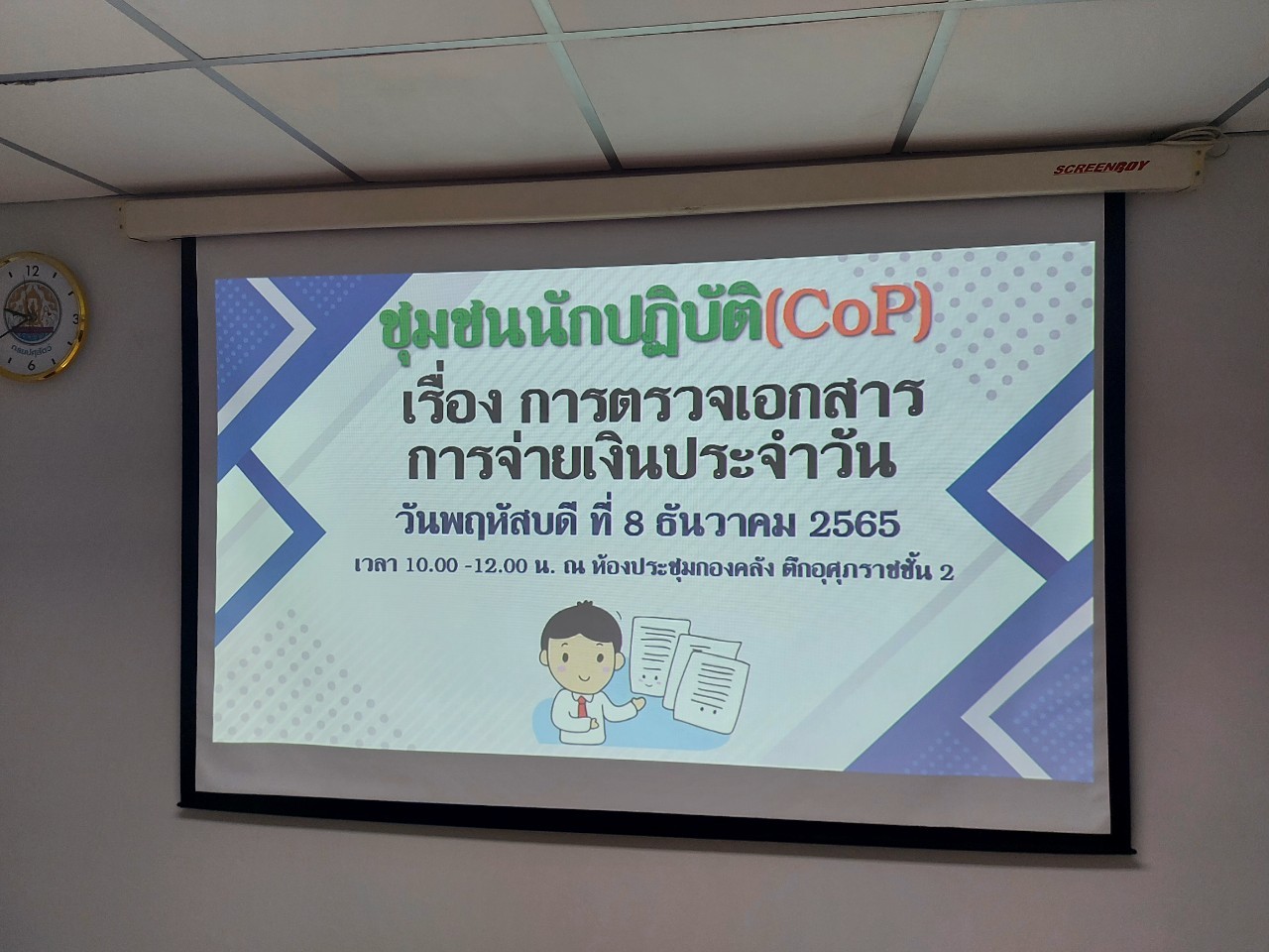 กลุ่มพัฒนา ระบบงานคลัง จึงจัดตั้งชุมชนนักปฏิบัติ หรือ CoP (Community of Practice) เป็นเทคนิคให้บุคลากรใน หน่วยงานมารวมกลุ่มกันอย่างไม่เป็นทางการ