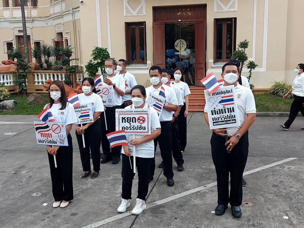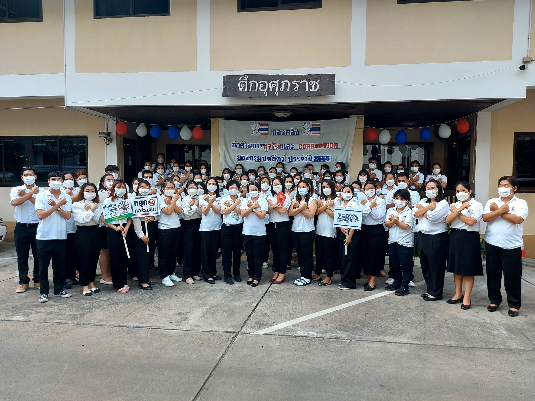 น.ส.จุไรรักษ์ อุนาภีร์ รักษาราชการแทนผู้อำนวยการกองคลัง พร้อมเจ้าหน้าที่กองคลัง เข้าร่วมกิจกรรมต่อต้านการทุจริตและประพฤติมิชอบของกรมปศุสัตว์ ปีงบประมาณ 2566 ณ บริเวณลานจอดรถยนต์หน้าตึกอำนวยการ กรมปศุสัตว์ เพื่อแสดงเจตจำนงสุจริตและความมุ่งมั่นในการต่อต้านการทุจริต สร้างความตระหนักรู้ ความเชื่อมั่นในการบริหาร จัดการ และการปฏิบัติราชการอย่างโปร่งใส