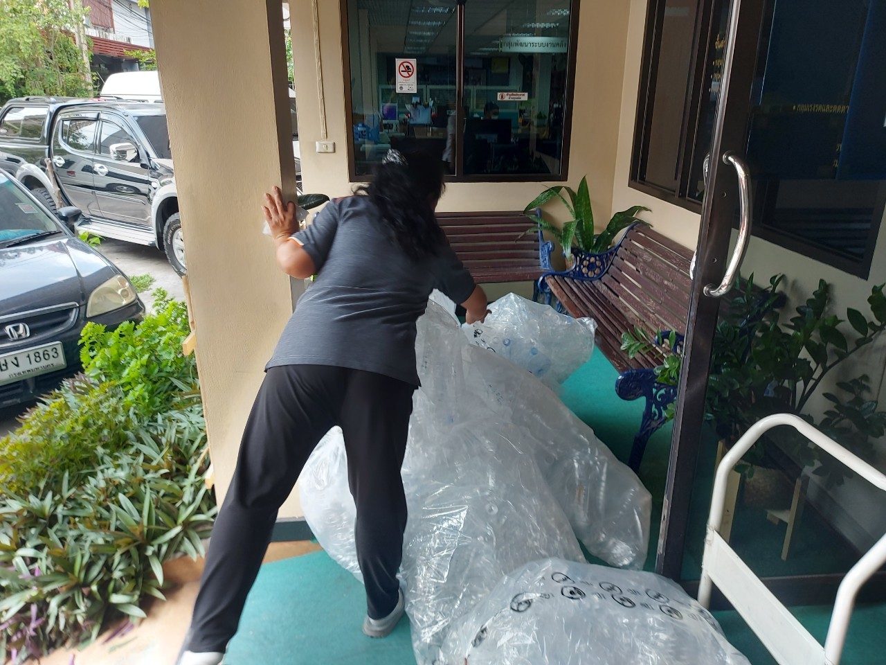 กองคลังร่วมบริจาคขวดพลาสติกที่ไม่ใช้แล้ว จำนวน 10 ถุง ให้วัดจากแดง อ.พระประแดง จ.สมุทรปราการ