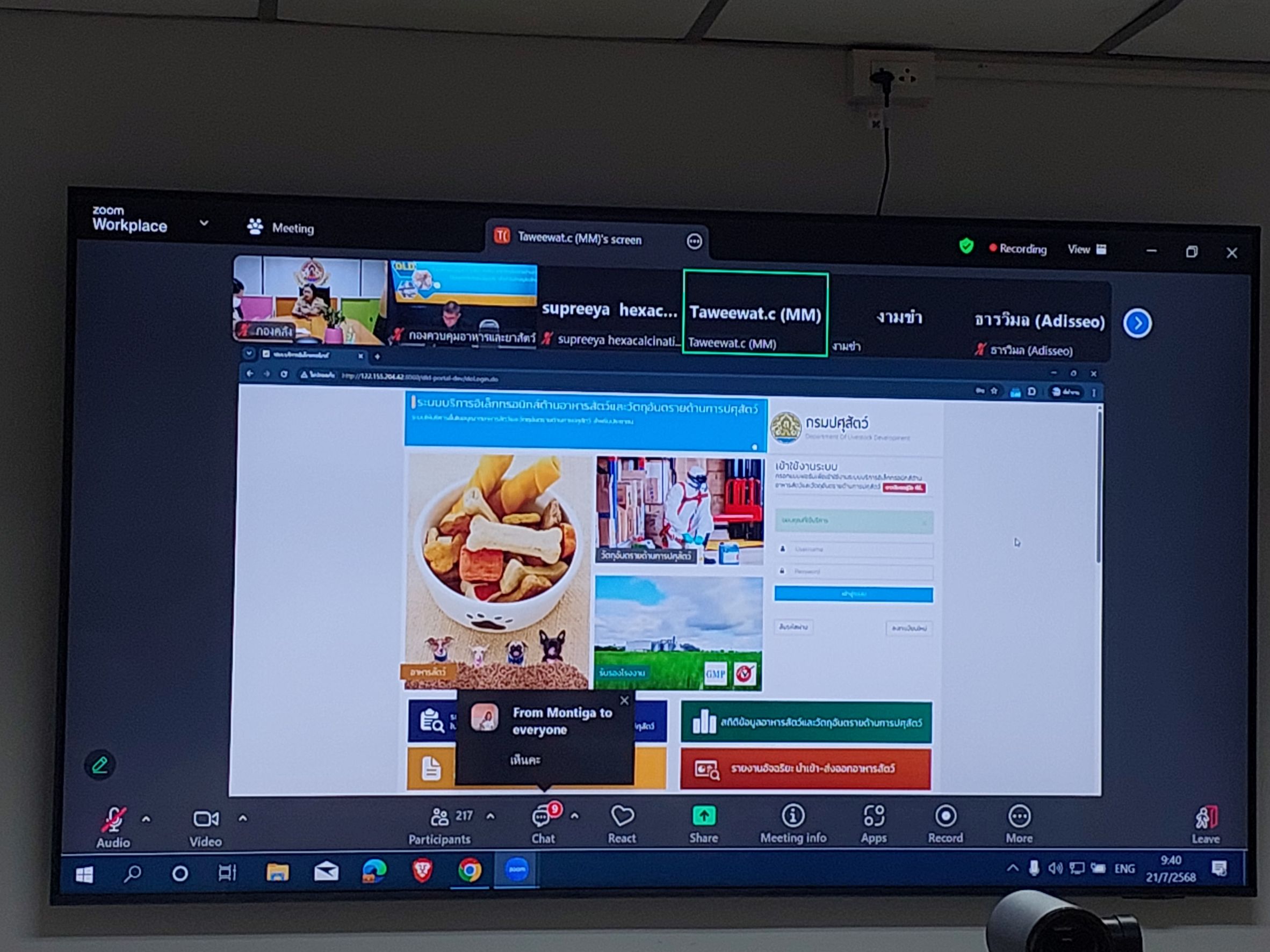นางสาวจุไรรักษ์ อุนาภีร์ ผู้อำนวยการกองคลังเป็นประธานเปิดการฝึกอบรม การใช้งานระบบบริการอิเล็กทรอนิกส์ (e-Payment) กลาง กรมปศุสัตว์ จัดอบรมโดยกองควบคุมอาหารและยาสัตว์ ให้กับผู้ประกอบการด้านอาหารสัตว์และวัตถุอันตราย เพื่อใช้เป็นช่องทางการชำระเงินระบบใหม่ทดแทนระบบเดิม ผ่านการประชุมทางไกล Zoom Meeting