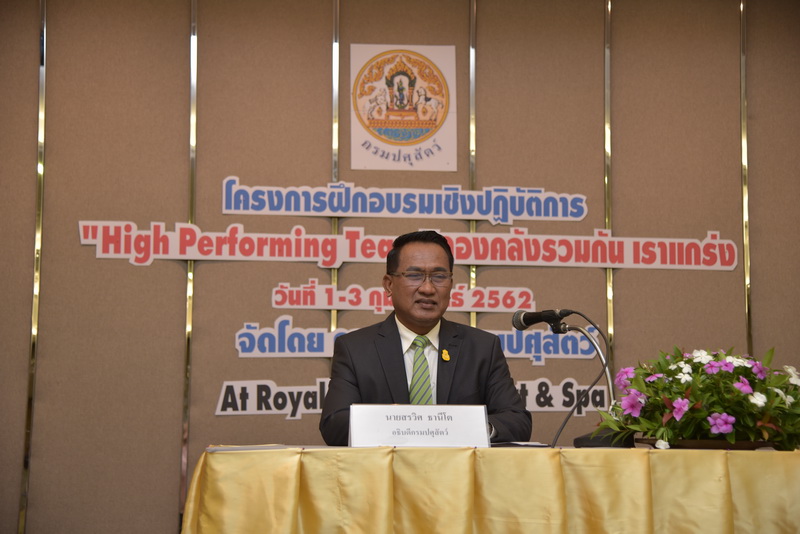 วันที่ 2 กุมภาพันธ์ 2562 นายสัตวแพทย์สรวิศ ธานีโต อธิบดีกรมปศุสัตว์ เป็นประธานเปิดการฝึกอบรมเชิงปฏิบัติการ เรื่อง “Hight Performing Team” กองคลัง รวมกัน เราแกร่ง สำหรับเจ้าหน้าที่กองคลัง จำนวน 85 คน โดย นายพจน์ภิรัชต์ เนียมจุ้ย ปศุสัตว์เขต 2 พร้อมคณะฯ ให้การต้อนรับ ณ โรงแรมรอยัลฮิลส์ กอล์ฟ รีสอร์ท แอนด์ สปา จังหวัดนครนายก ทั้งนี้ กองคลังกรมปศุสัตว์ ได้ตระหนักถึงความสำคัญของการมีความคิดเห็น ทัศนคติ และวิธีการทำงานที่เป็นไปในทิศทางเดียวกันส่งผลต่อประสิทธิภาพการทำงานของทีม มีผลให้การดำเนินงานประสบความสำเร็จตามเป้าหมายที่กำหนดขององค์กร เพื่อให้เจ้าหน้าที่ มีความรู้ เข้าใจถึงการปฏิสัมพันธ์ การนำทีมที่ดี เกิดทักษะในการทำงานเป็นทีม การดูแลแก้ไขข้อขัดแย้งต่าง ๆ ภายในทีม อันจะส่งผลให้เกิดประโยชน์สูงสุดต่อภารกิจของกรมปศุสัตว์ต่อไป